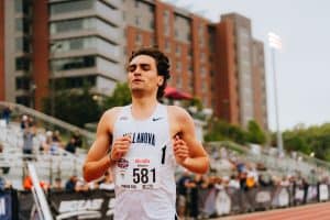 In a surprise Liam Murphy of Villanova was eliminated in the Heat phase of the Men’s 1500m. Murphy finished sixth in his heat running a time of 3:55.44. The top five finishers in both preliminaries move on the the final on Friday. The next two fastest times would also qualify. He had to hope the advance on time, but he did not. The final qualifier was Ferenc Kovacs of Harvard who ran the distance in 3:42.31. The fastest qualifying time is 3:41.67 turned in by Adam Spencer of Wisconsin. Jack Crull of Bradley won Heat one that Murphy was a participant. Crull’s time was 3:51.96. None of the heat one runners advanced. Murphy ran most of the race either in front or in the top three. He led after 700 meters, but he was passed by runners both on the inside and outside of him. The split times for Murphy was :49.62 the top opening heat time. He followed that with 1:11.84, :59.88, and :51.13. The Villanova runner still holds the collegiate record time of 3:33.02 in this event ran on March 27, 2025.