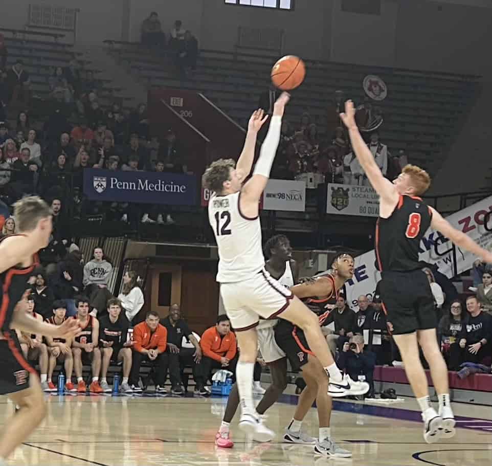 “You definitely on the court especially in moments like that,” said Power, a junior forward for the Quakers. “It’s like a different kind of gravity on the floor. Last night we had a chance to talk with a lot of the alumni, former players and that’s when I got a sense for this rivalry, what it means to past players, students, everything, coaches. It was cool to get some background and context heading into the game. I think it motivated a lot of our guys.”